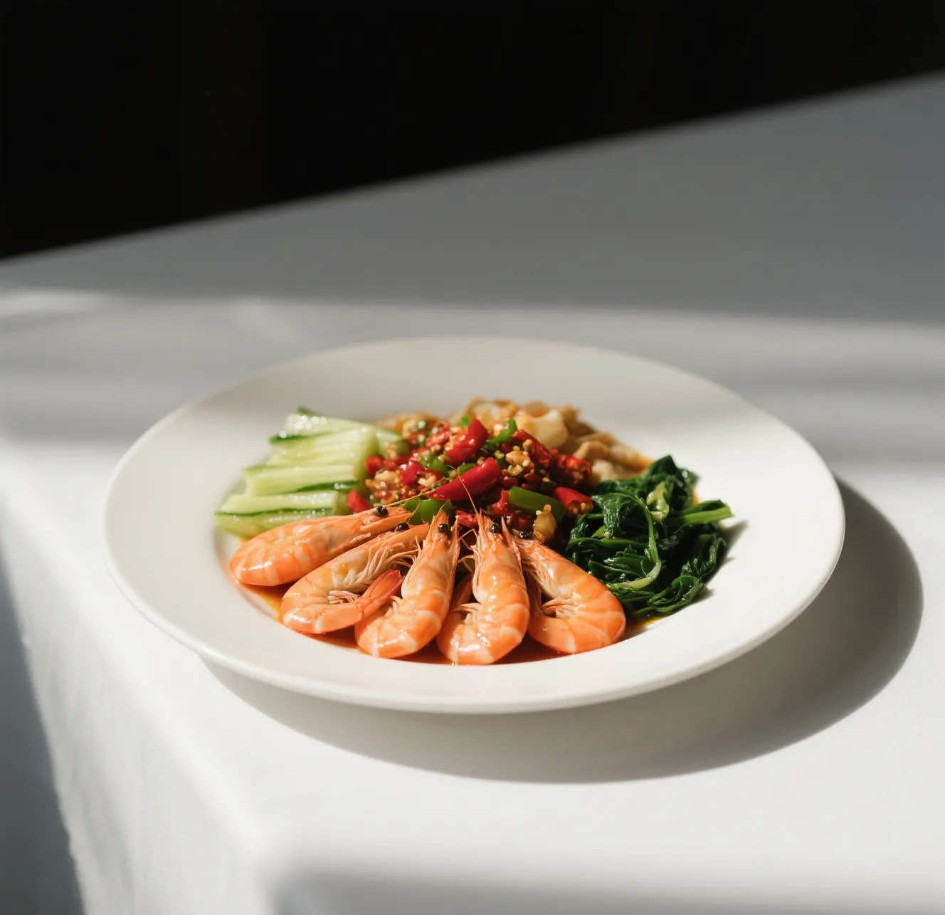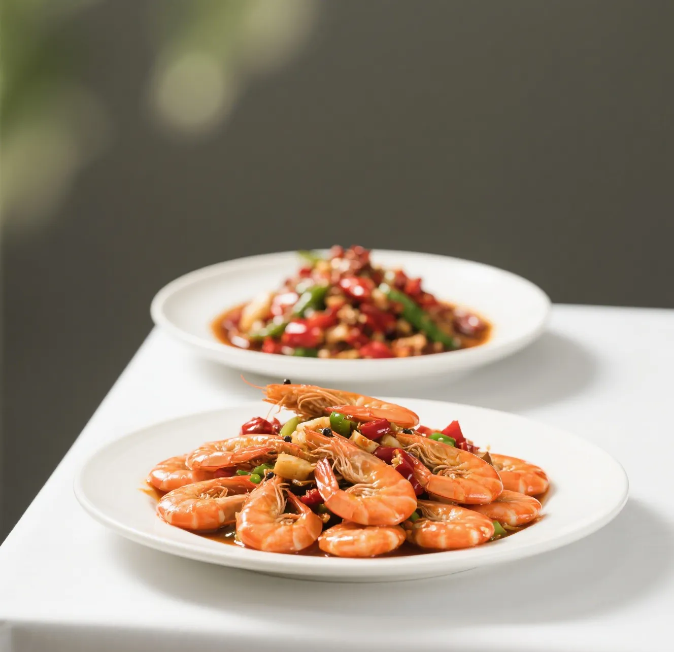 🌶️ Tender shrimp stir-fried with broccoli, carrots, bell peppers, and baby corn in a bold, spicy Hunan-style brown sauce.