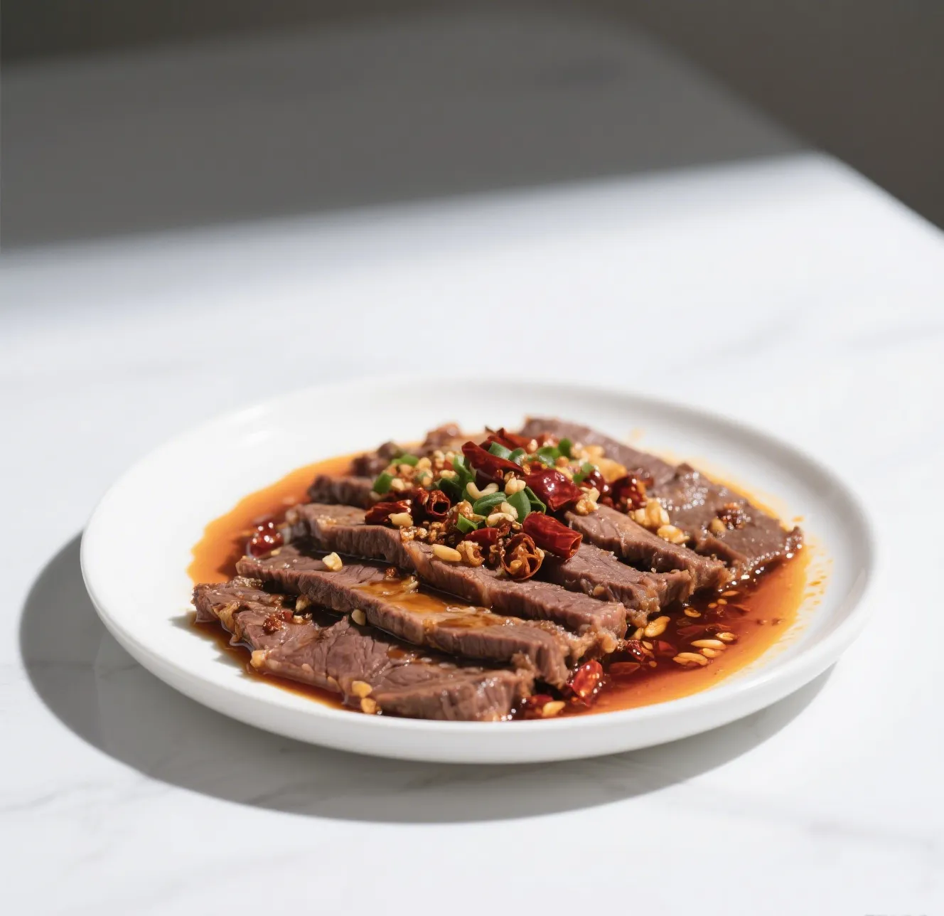 🌶️ Tender beef slices stir-fried with bell peppers, onions, and celery in a spicy Szechuan-style garlic sauce.