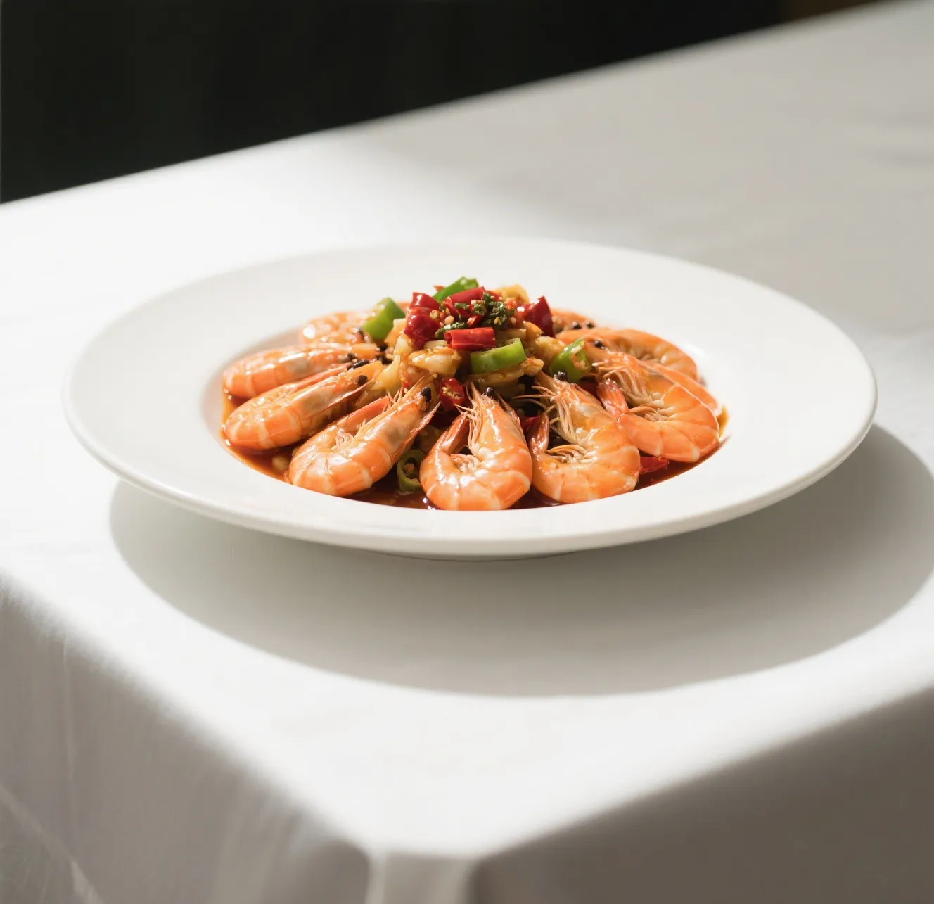 🌶️ Plump shrimp stir-fried with bell peppers, onions, and celery in a spicy Szechuan-style garlic sauce.🔥 Bold heat, rich flavor, and just the right kick!Perfect for those who like it hot and flavorful.