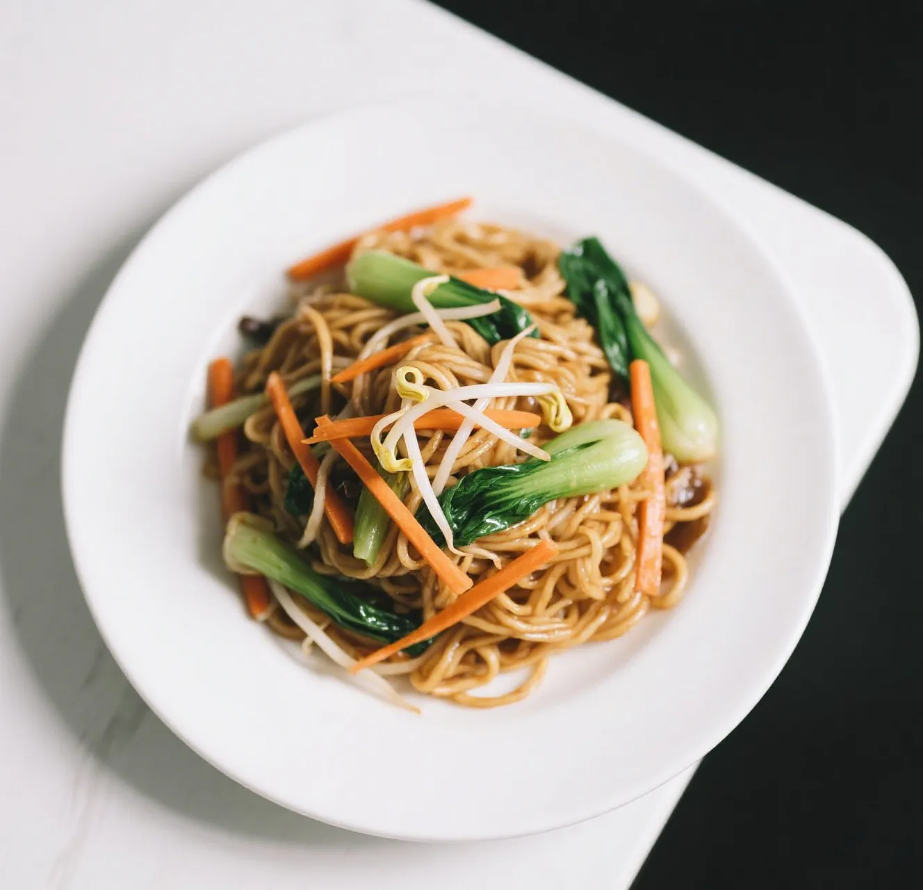 🥦 Stir-fried noodles tossed with crisp broccoli, carrots, cabbage, bean sprouts, and onions in a light savory sauce.